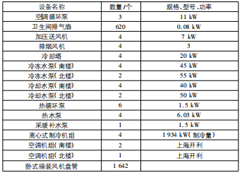建筑能源管理的前提是對建筑能源消耗的監測和統計,高效的能源管理要建立在充分的能耗監測和準確的能源統計之上。這就包括了對建筑用能系統,包括暖通空調系統、給排水系統、電氣系統等的全面監測,以及對各類設備分類分項的能耗數據的采集、整理與分析。而過往采用傳統方法進行能耗統計與分析,由于公共建筑設備數量和種類多樣,設備數量、規格、型號、功率等各不相同(見表1,表2),因此能源統計獲取的數據量龐大、數據類型多種多樣,進行能源審計的工作量和工作難度都較高,這在一定程度上阻礙了相關能源管理工作的開展。尤其是對于建筑集群來說,傳統的建筑能耗統計無法滿足多棟建筑同時展開的綜合能源管理。