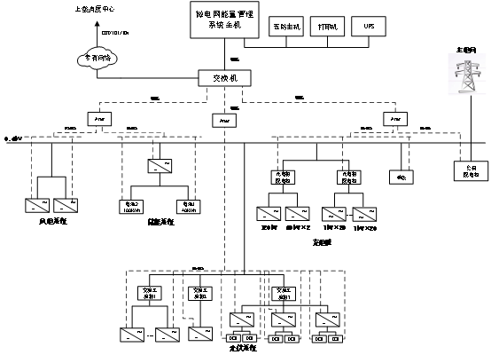 系統(tǒng)通過測控單元與儲能裝置、電池管理系統(tǒng)(BMS)、汽車充電樁、風(fēng)機(jī)逆變器、光伏逆變器進(jìn)行實(shí)時(shí)信息的采集和處理,實(shí)時(shí)采集模擬量、開關(guān)量。