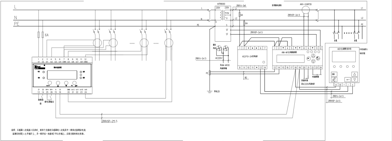 絕緣監測裝置的任務是監測相線與大地之間的絕緣電阻,當阻值低于設定值時發出報警提示。絕緣監測裝置裝于隔離變壓器二次側出線與大地之間,在系統中施加測量電流,當系統絕緣電阻下降時,發出報警信號。AIM-M10型絕緣監測儀自帶一路24V直流電源輸出,可為AID150型集中報警顯示儀供電。