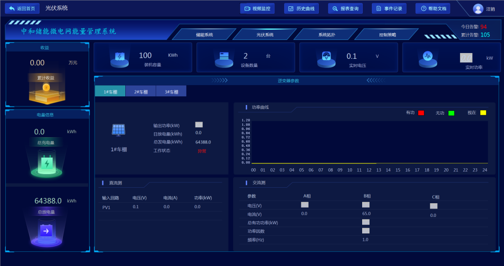 監測企業分布式光伏電站運行情況,包括逆變器運行數據、光伏發電效率分析、發電量及收益統計以及光伏發電功率控制。