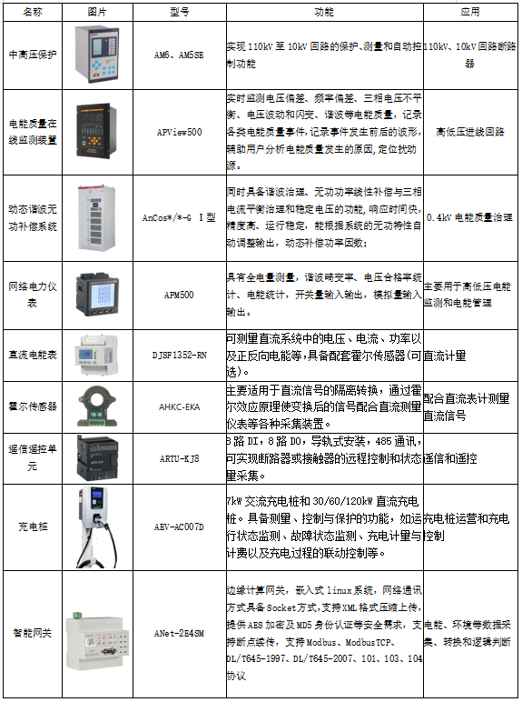 除了微電網能量管理系統軟件外,還具備現場傳感器、智能網關等設備,還包括了高低壓配電綜合保護和監測產品、電能質量在線監測裝置、電能質量治理、新能源充電樁、電氣消防類解決方案等,可以為企業微電網數字化提供一站式服務能力。