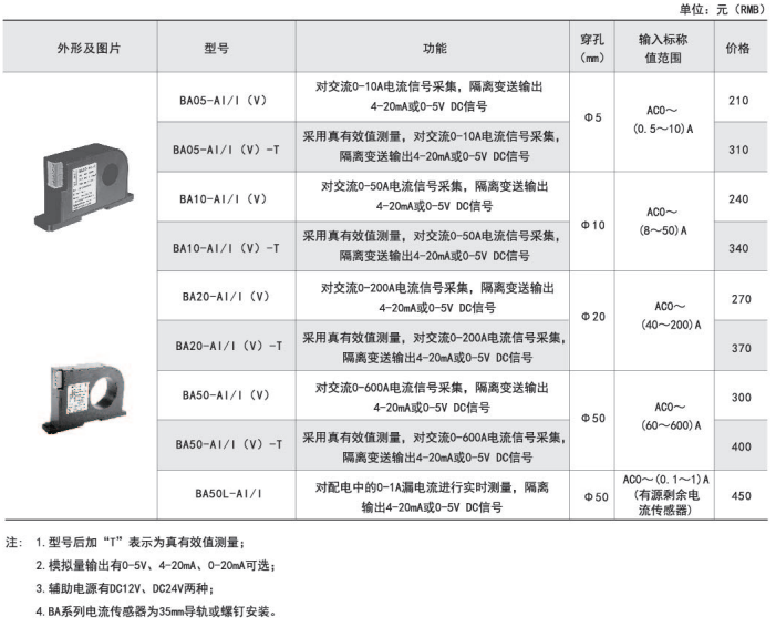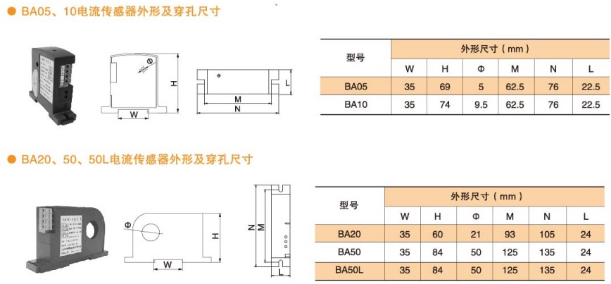 BA系列產品應用電磁感應原理,對電網中的交流電流進行實時測量,將其隔離變換為標準的直流信號輸出。