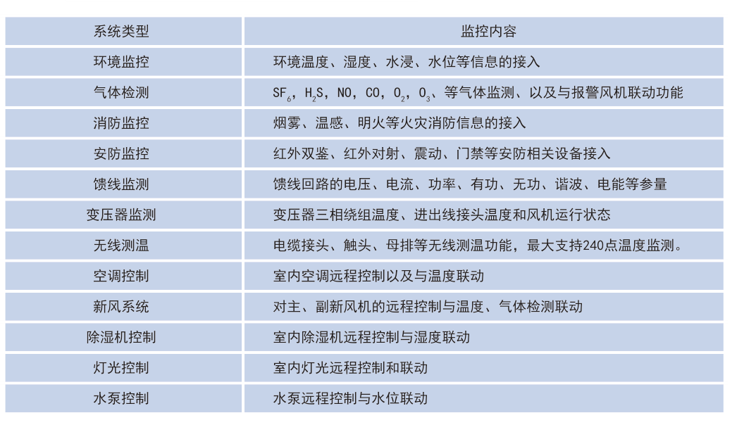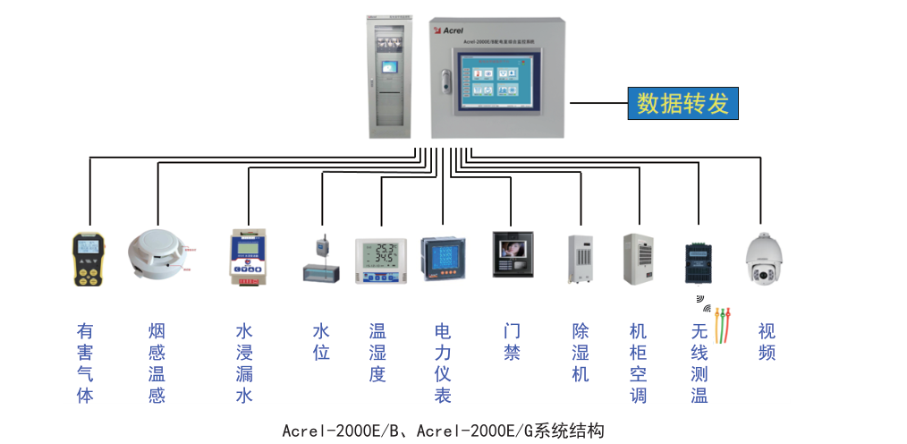 由于硬件資源以及系統(tǒng)軟件上的差別,Acrel-2000E/A作為針對變電所配電室的環(huán)境輔助監(jiān)控系統(tǒng),只對環(huán)境參量設(shè)備進(jìn)行在線監(jiān)測;而Acrel-2000E/B與Acrel-2000E/G作為硬件資源豐富,系統(tǒng)功能更為強(qiáng)大的設(shè)備,可以配合我司無線測溫以及電力儀表進(jìn)行在線監(jiān)測。
