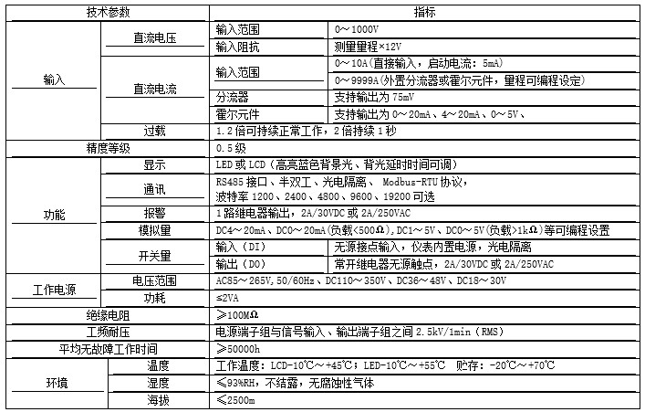 該系列儀表可測量直流系統中的電壓、電流、功率、正向與反向電能。可帶RS485通訊接口、模擬量數據轉換、開關量輸入/輸出等功能,既可用于本地顯示,又能與工控設備、計算機連接,組成測控系統。